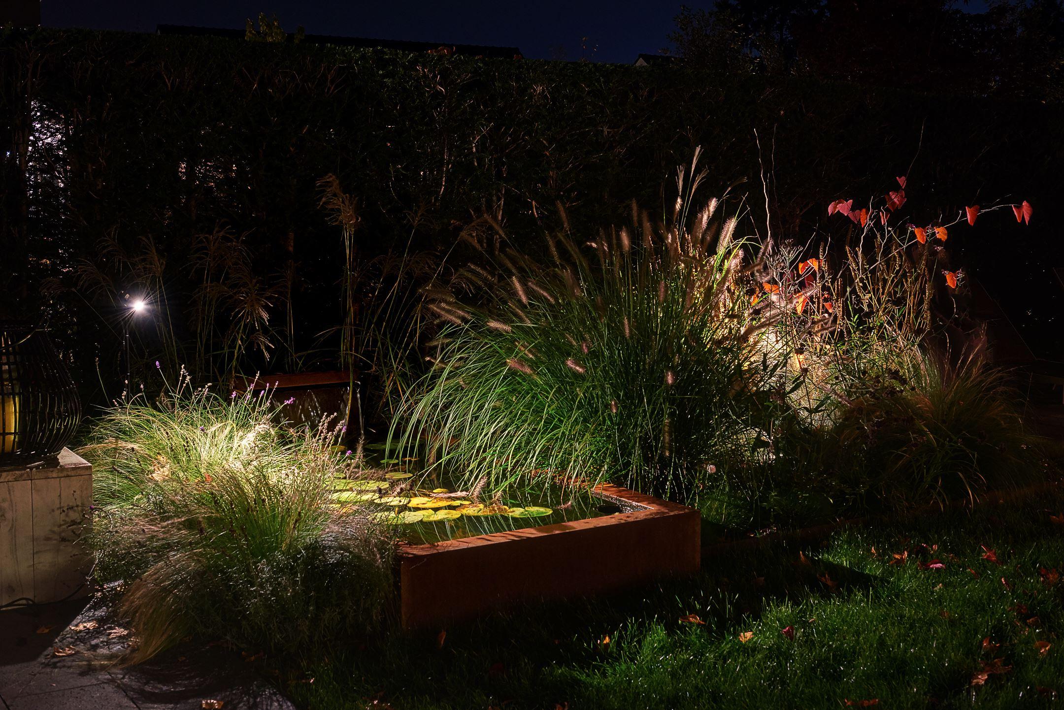 Wenn Sie richtig mit Licht spielen, kann Ihr Garten bei Dunkelheit ein völlig neues Aussehen erhalten. Hier sind mindestens zwei Dimensionen wichtig: wie Sie Ihren Garten von zu Hause aus sehen und wann Sie selbst im Garten sitzen.